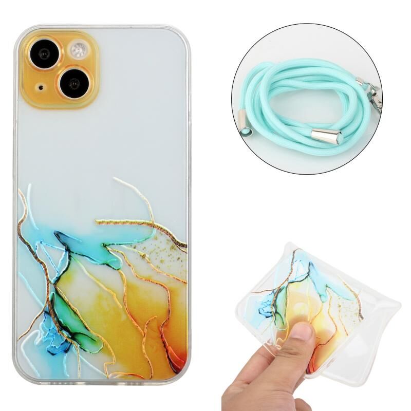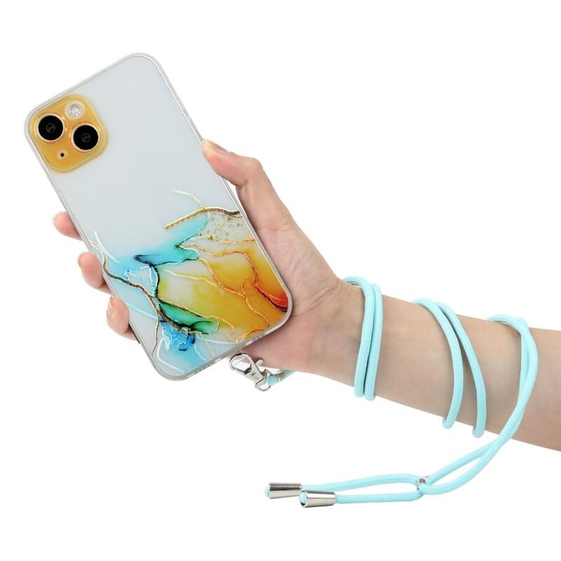 Θήκη για iPhone 14, κοίταγμα μαρμάρου, TPU αντικραδασμική προστατευτική με κορδόνι λαιμού (Γκρι)