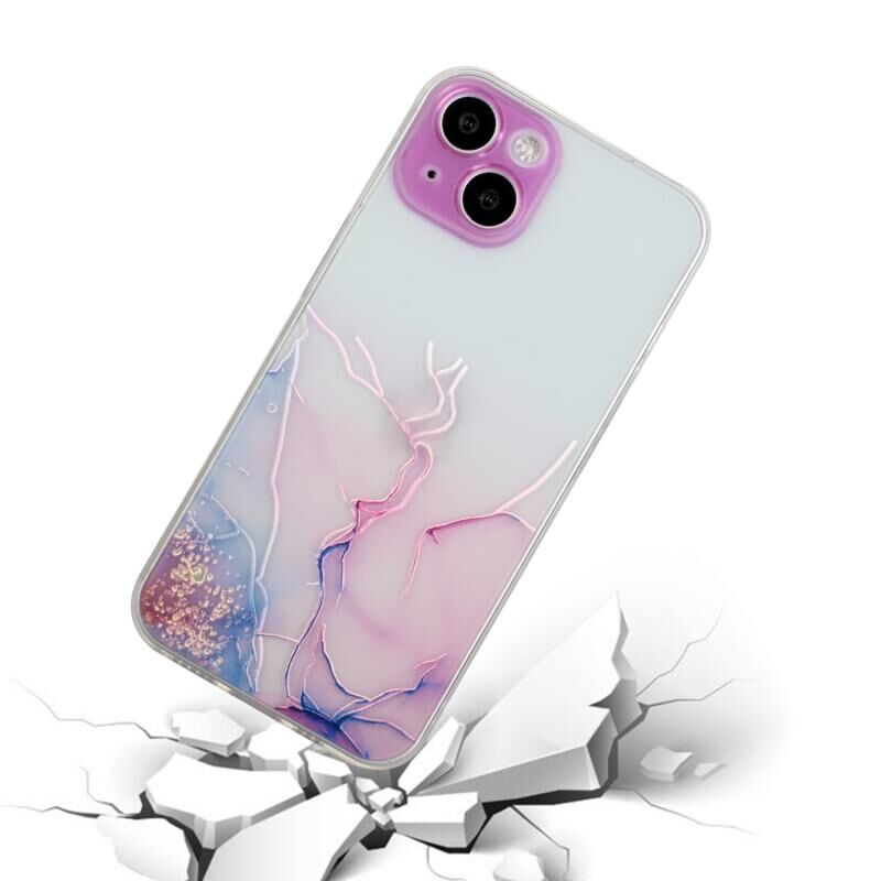Θήκη προστασίας για iPhone 14 από TPU με σχέδιο κοίλου μαρμάρου, ευθείες άκρες και λεπτές οπές (Κίτρινο Μπλε)