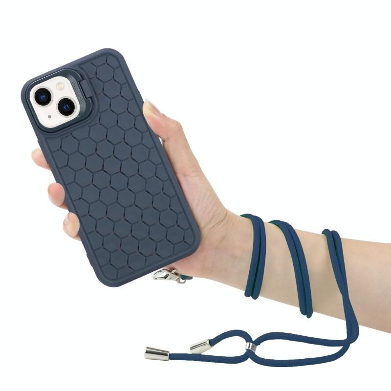Θήκη τηλεφώνου MagSafe για iPhone 14 με σχέδιο κυψελωτού φακού και λουρί (Μπλε)