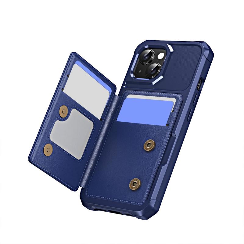 For iPhone 14 Horizontal Flip Card Bag Holder Leather Phone Case(Dark Blue)