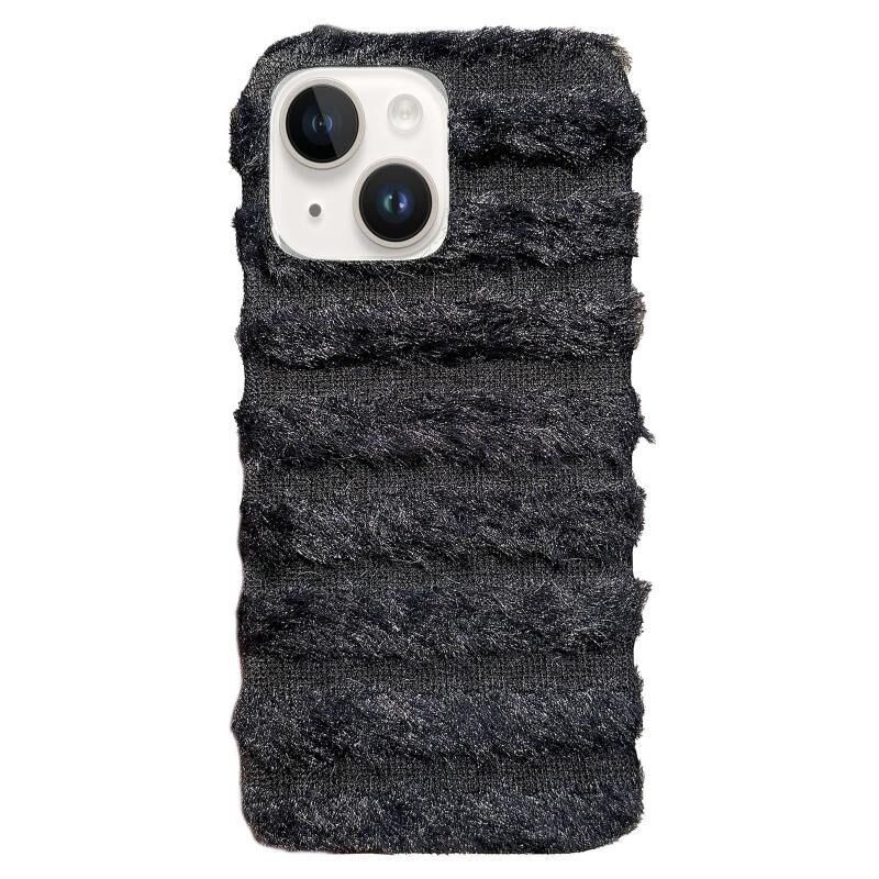 For iPhone 14 Horizontal Striped Plush TPU Phone Case(Black)
