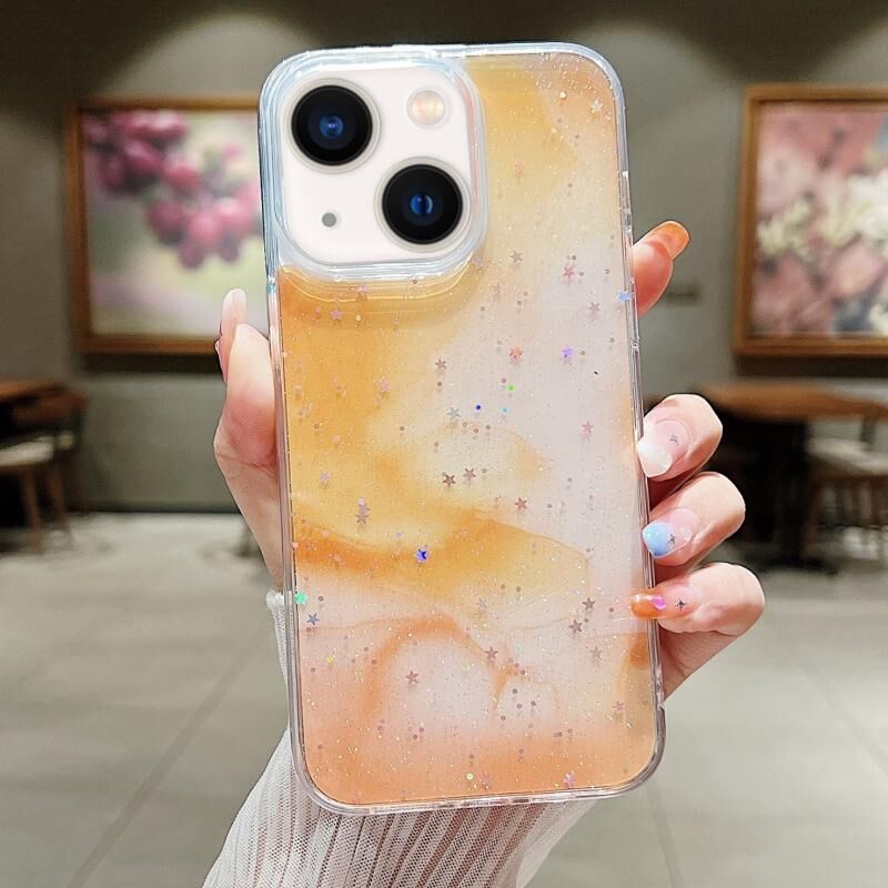 Θήκη τηλεφώνου TPU με γκλίτερ και μουτζουρωμένο μελάνι για iPhone 14 (Κίτρινο)
