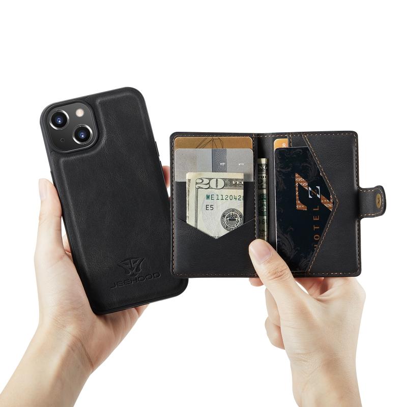 For iPhone 14 JEEHOOD Retro Magnetic Detachable Leather Phone Case (Black) (JEEHOOD)