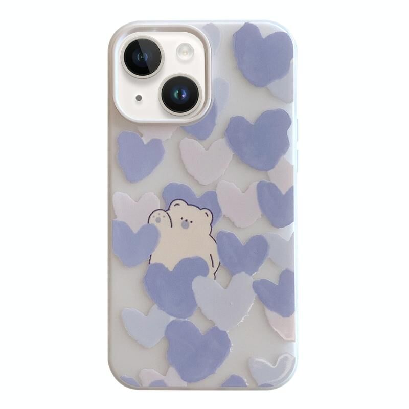 For iPhone 14 Jelly 2 in 1 TPU Hybrid PC Phone Case(Purple Heart Bear)