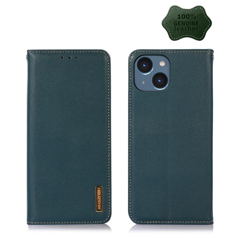 For iPhone 14 KHAZNEH Nappa Top Layer Cowhide Leather Phone Case (Green)