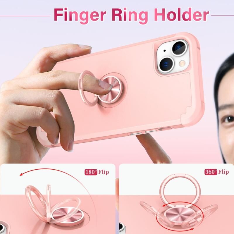 Θήκη τηλεφώνου με περιστρεφόμενη δακτυλίδι και μαγνητική βάση για iPhone 14 L2 (Μέντα Πράσινο)