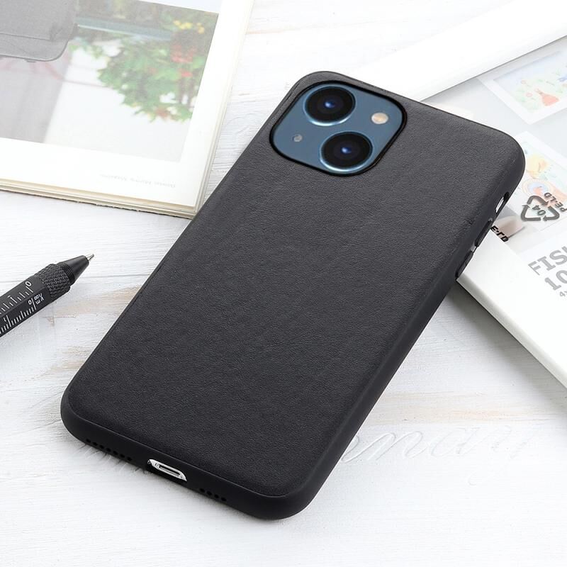 Θήκη τηλεφώνου από γνήσιο δέρμα αρνιού με υφή για iPhone 14 (Μαύρο)