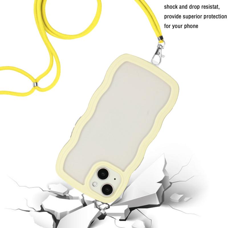 Θήκη τηλεφώνου για iPhone 14, κορδόνι, διαφανές PC TPU σε χρώμα καραμέλας με κυματιστό σχέδιο (Κίτρινο)
