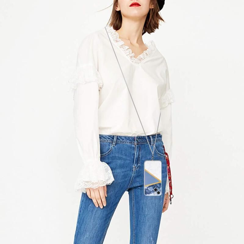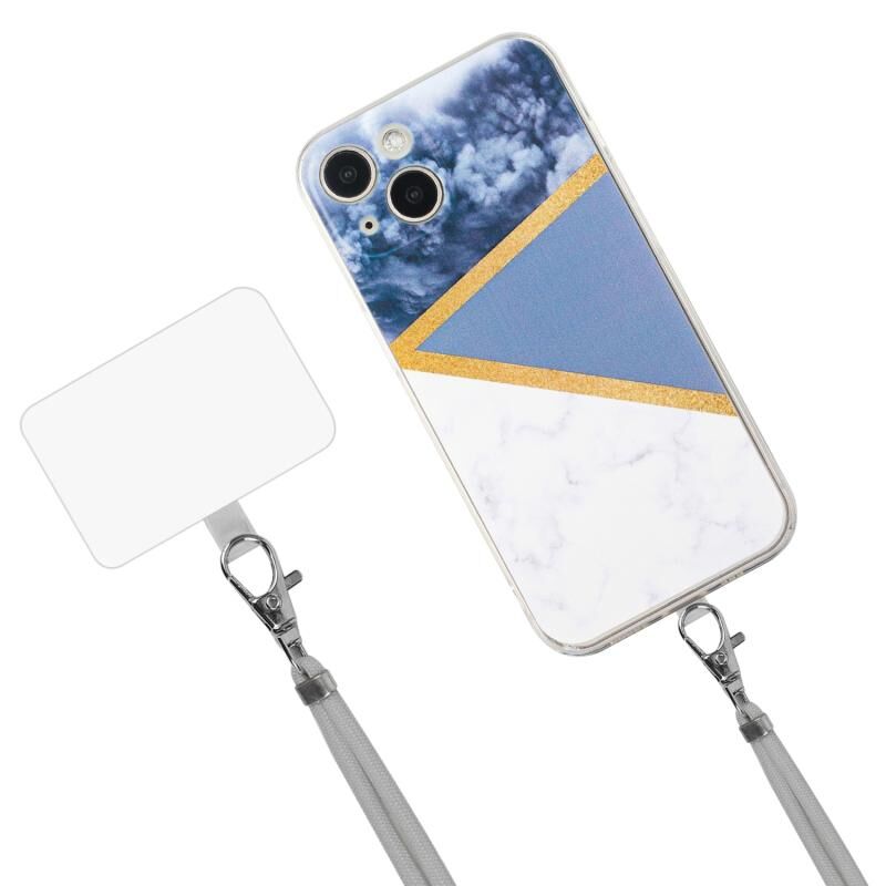 Θήκη για iPhone 14 με Λουρί, Ραφές, Μάρμαρο, TPU (Ροζ)