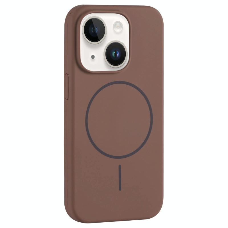 Για iPhone 14 Θήκη Σιλικόνης Υγρού με MagSafe & Προστασία Κάμερας (Καφέ)