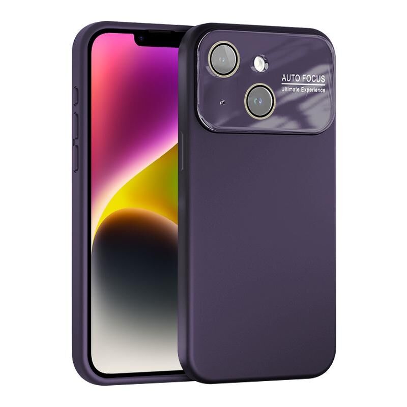 For iPhone 14 Large Window Acrylic Lens Film + Liquid Silicone Full Coverage Phone Case(Dark Purple)
