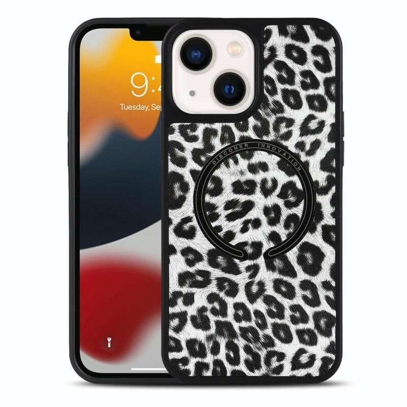 For iPhone 14 Leather Texture MagSafe Magnetic Phone Case (Black Leopard)