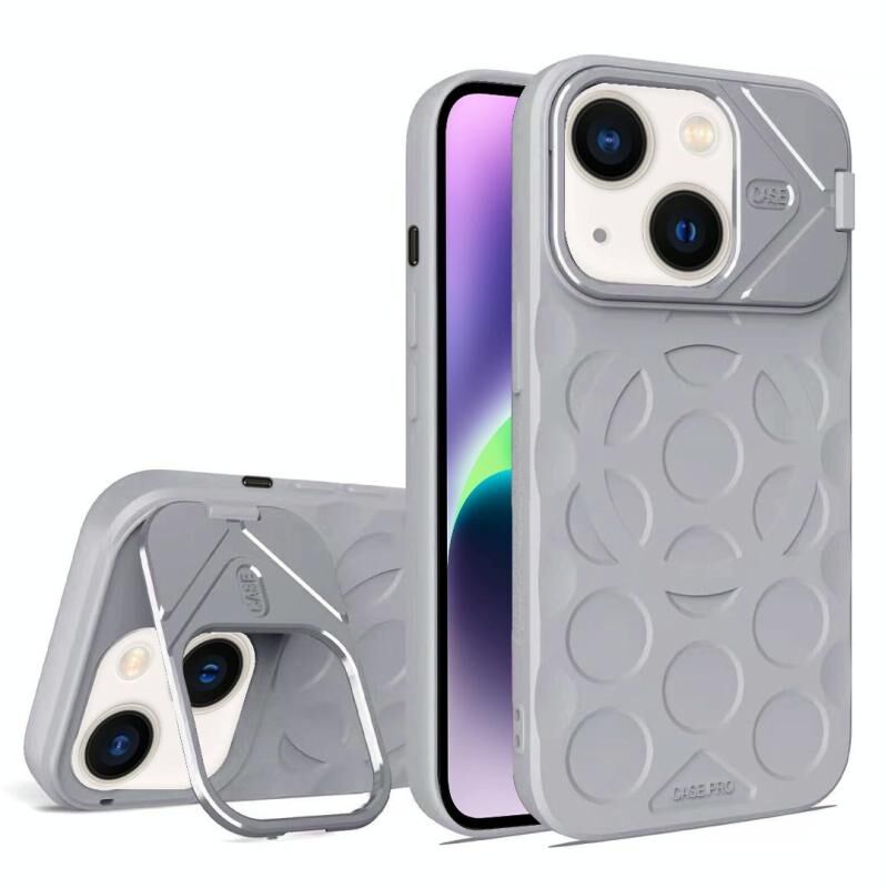 For iPhone 14 Lens Frame Holder MagSafe PC Hybrid TPU Phone Case(Titanium Gray)