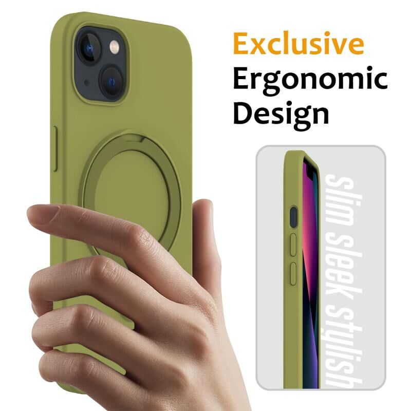 Θήκη τηλεφώνου για iPhone 14 από υγρή σιλικόνη με μαγνητική σύνδεση MagSafe και δακτύλιο στήριξης (Λευκό)