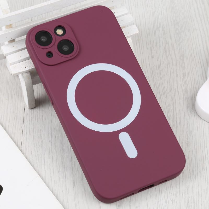 For iPhone 14 Liquid Silicone Magsafe Phone Case (Wine Red)