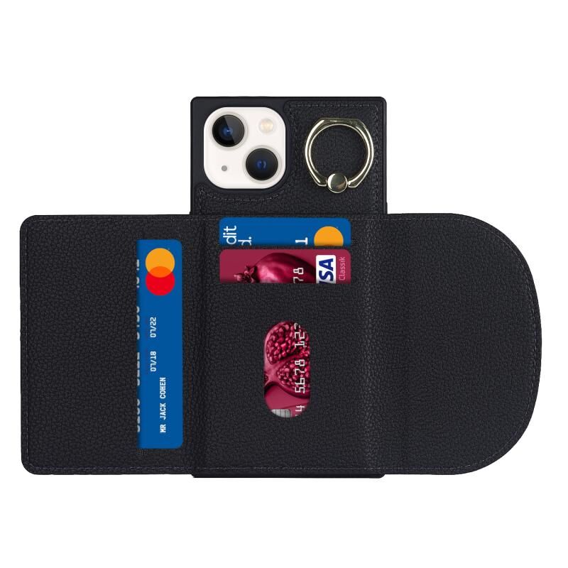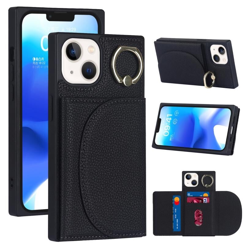 Θήκη τηλεφώνου για iPhone 14 με υφή δέρματος λitchi και θήκη καρτών (Μαύρο)