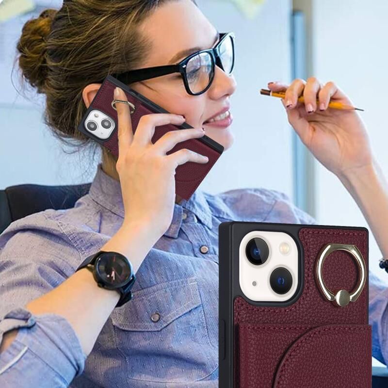 Θήκη τηλεφώνου για iPhone 14 με υφή δέρματος λitchi και θήκη καρτών (Μαύρο)