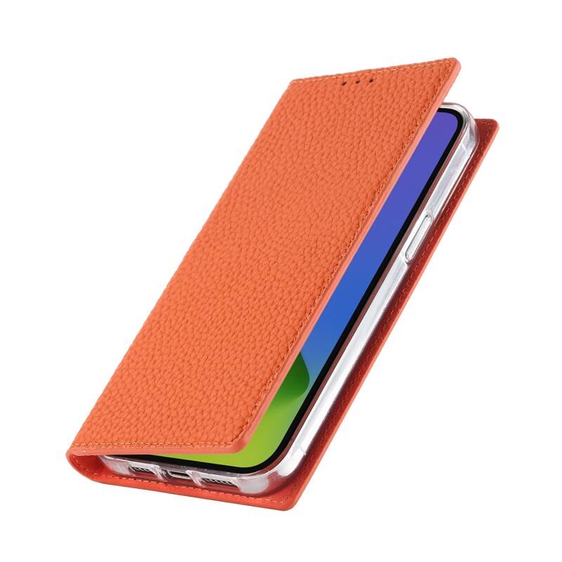 Θήκη τηλεφώνου από γνήσιο δέρμα με υφή Litchi για iPhone 14 (Μαύρο)