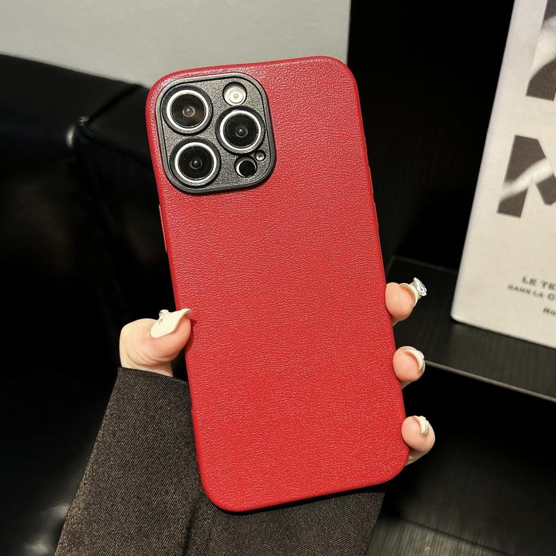 Θήκη iPhone 14 με Υφή Litchi, TPU, Μαύρο Πλαίσιο Φακού (Κόκκινο)