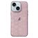 Θήκη τηλεφώνου IMD από ακρυλικό με σχέδιο καρδιάς και διαμαντένια στεφάνη φακού για iPhone 14 (Ροζ)