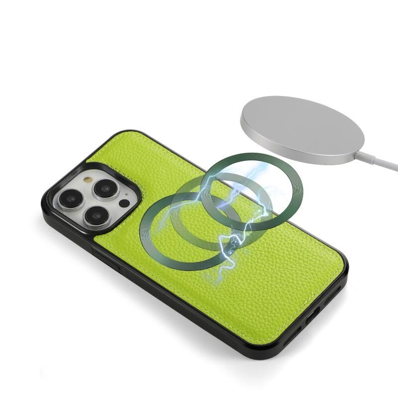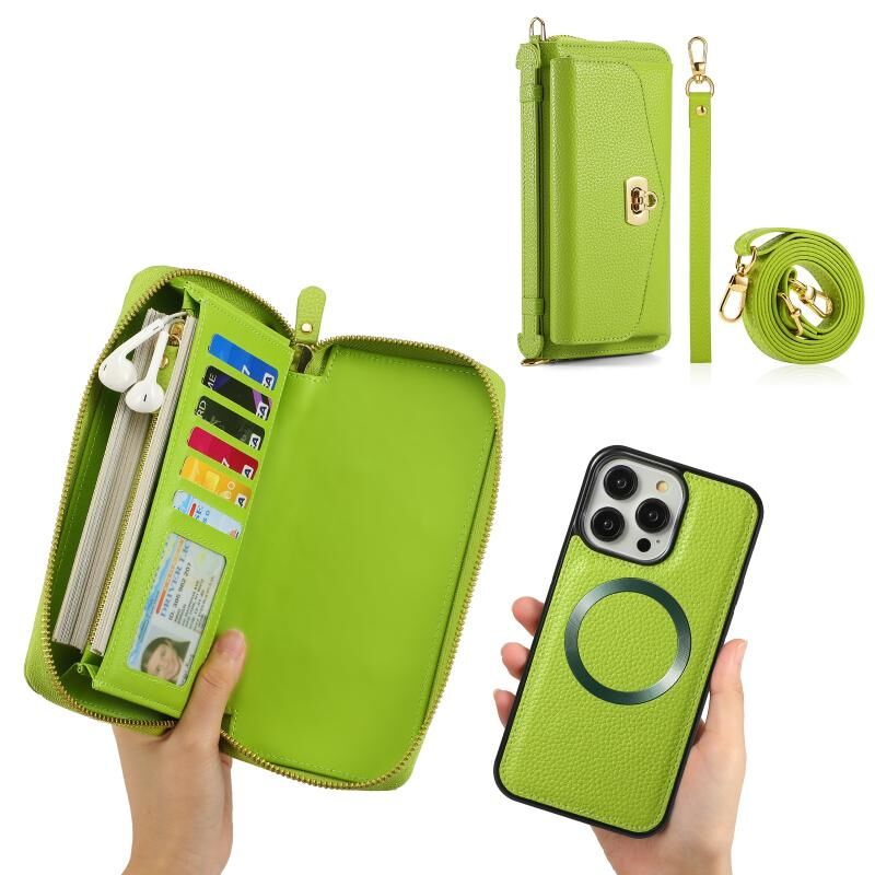 Θήκη κινητού τηλεφώνου για iPhone 14 MagSafe Crossbody, πολυλειτουργική με φερμουάρ, από δέρμα λύτσι (πορτοκαλί).