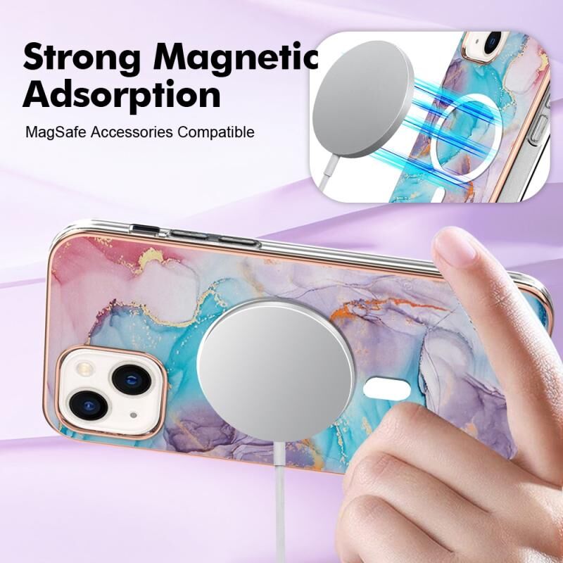 Θήκη τηλεφώνου για iPhone 14 με σχέδιο μαρμάρου, διπλής όψης IMD, συμβατή με MagSafe, από TPU (Μωβ 002)