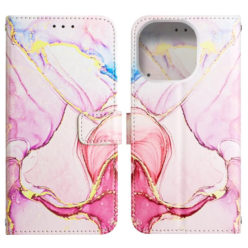 Θήκη τηλεφώνου από δέρμα με σχέδιο μάρμαρου για iPhone 14, τύπου flip (Rose Gold LS005) - Pro, κυκλοφορία Pro.