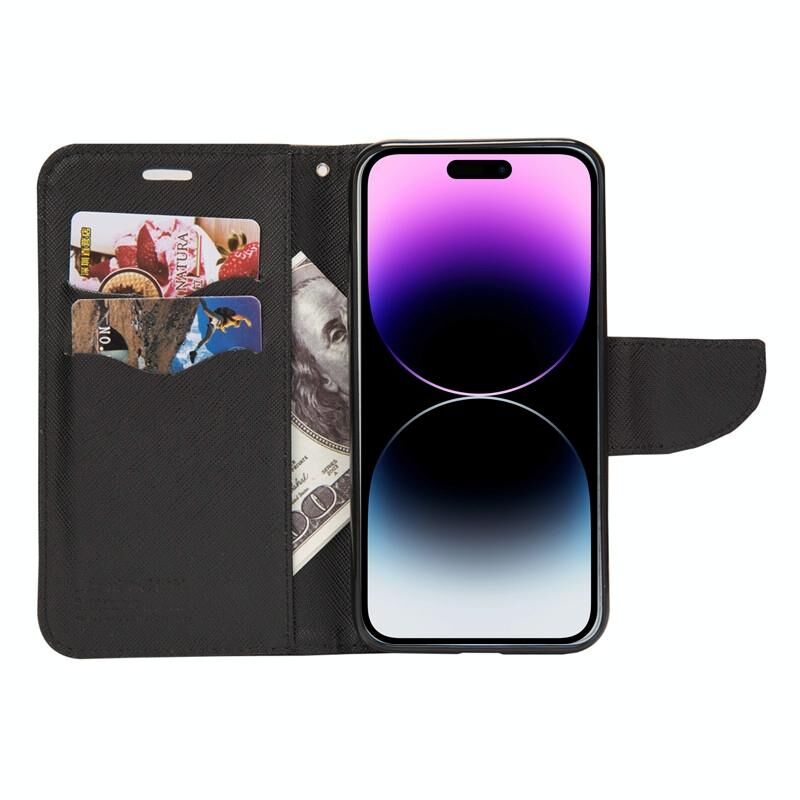 For iPhone 14 Mercury Contrast Color Splicing Leather Phone Case(Black)