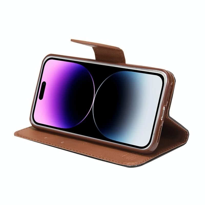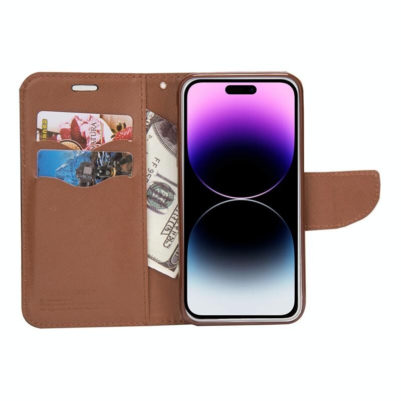 For iPhone 14 Mercury Contrast Color Splicing Leather Phone Case(Brown)
