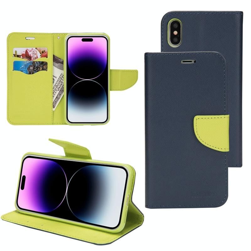 For iPhone 14 Mercury Contrast Color Splicing Leather Phone Case(Dark Blue)