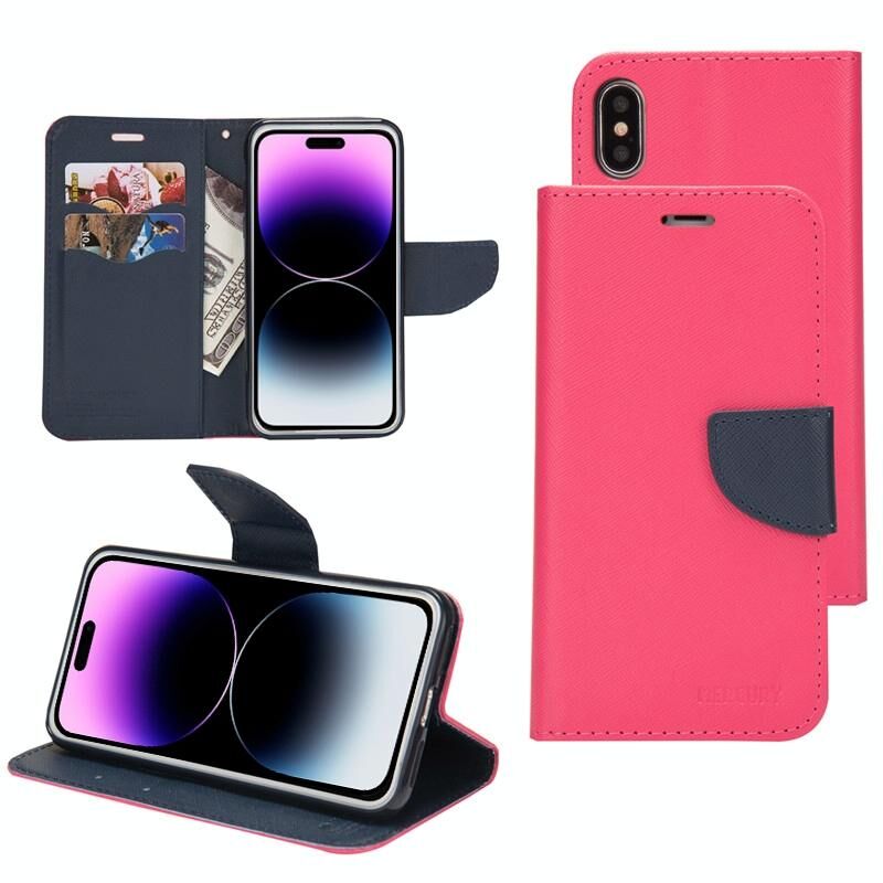 For iPhone 14 Mercury Contrast Color Splicing Leather Phone Case(Rose Red)