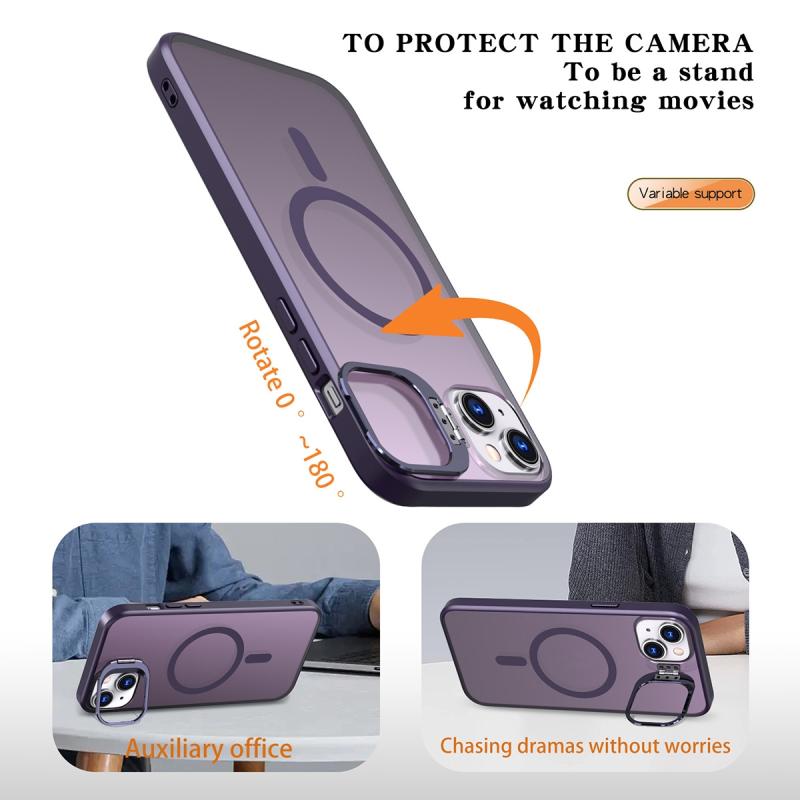 For iPhone 14 Metal Invisible Camera Holder MagSafe Magnetic Phone Case(Purple)