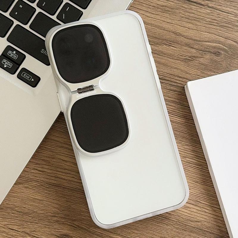 For iPhone 14 Metal Sunglasses Holder TPU + PC Phone Case(White)