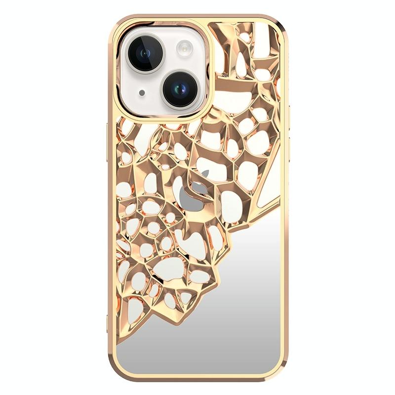 For iPhone 14 Mirror Style Hollow Heat Dissipation Electroplated TPU Phone Case(Gold)