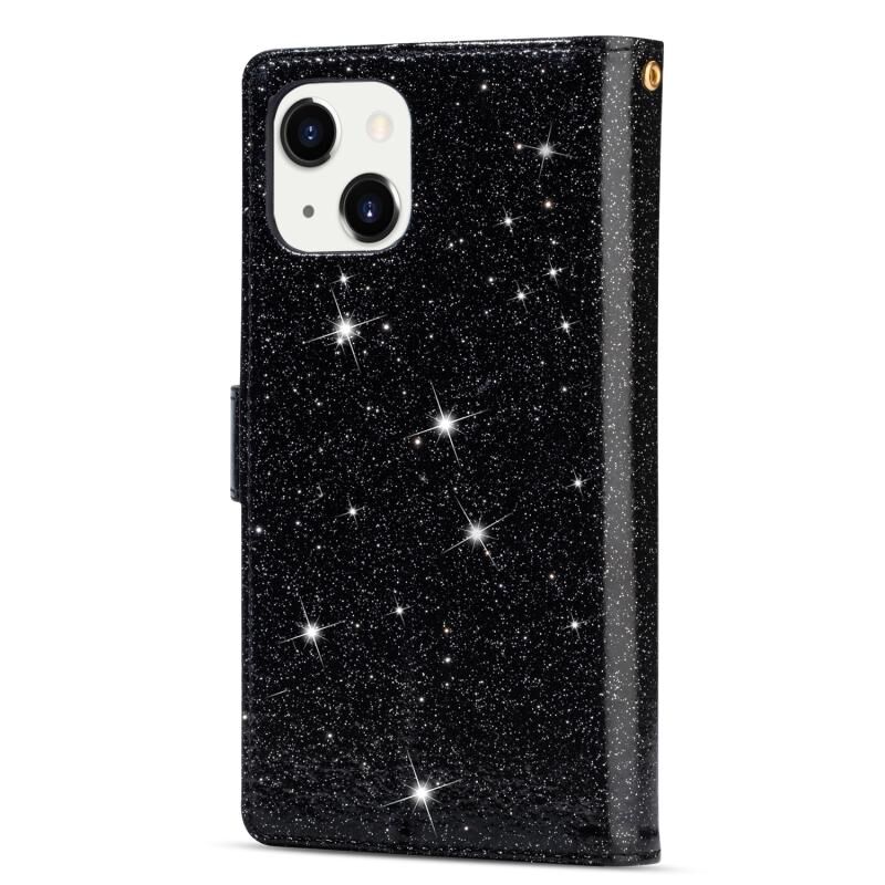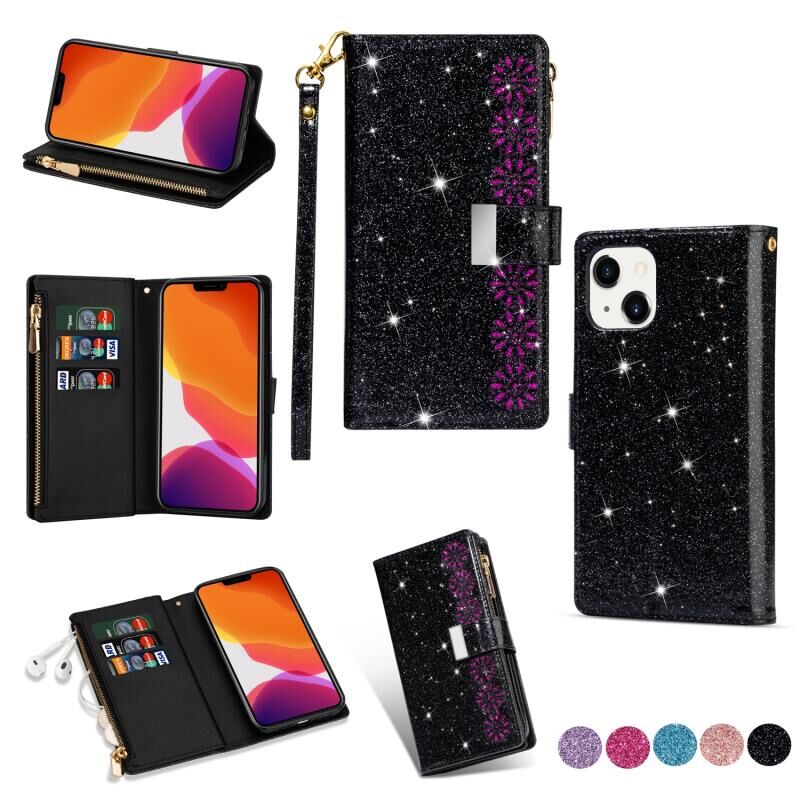 Θήκη δερμάτινη για iPhone 14 με πολλαπλές θήκες καρτών, χαραγμένη με λέιζερ, γκλίτερ και φερμουάρ, Max (Γαλάζιο του ουρανού)