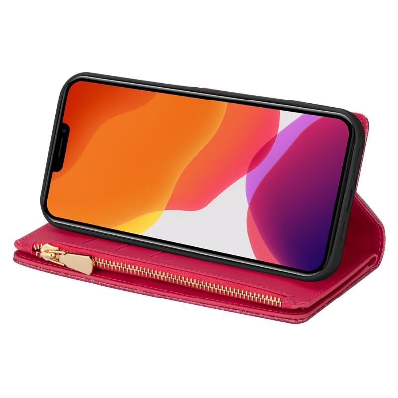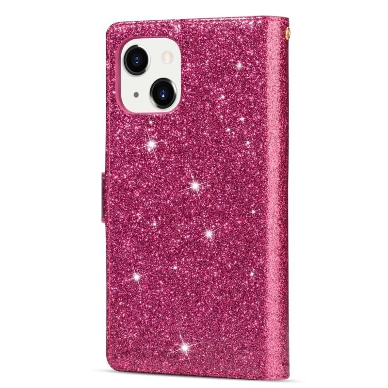 Θήκη δερμάτινη για iPhone 14 με πολλαπλές θήκες καρτών, χαραγμένη με λέιζερ, γκλίτερ και φερμουάρ, Max (Γαλάζιο του ουρανού)