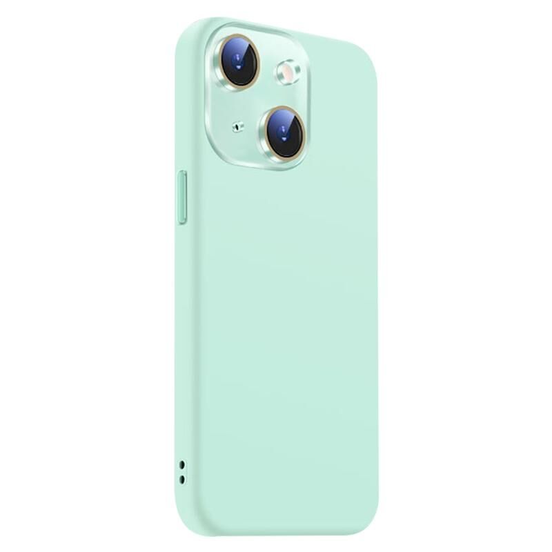 For iPhone 14 Nano Lens Cover Liquid Silicone Phone Case(Light Cyan)
