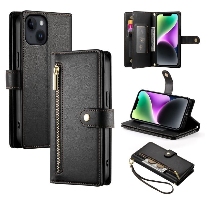 Θήκη τηλεφώνου δερμάτινη με θήκη για κάρτες και φερμουάρ για iPhone 14 (Κόκκινο)