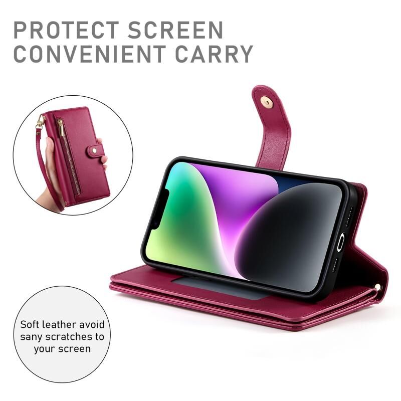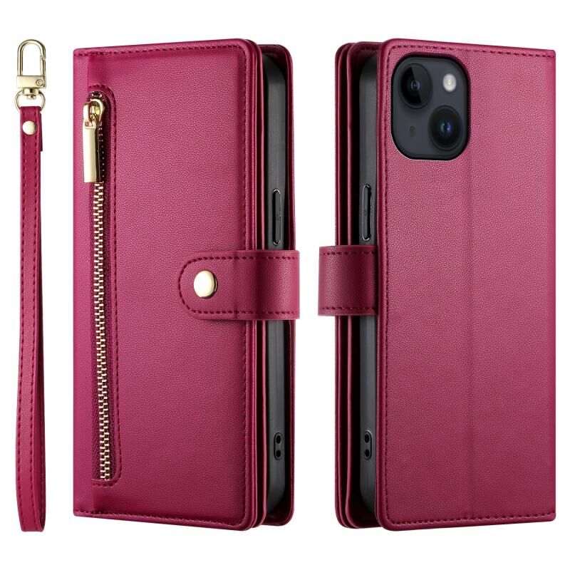 For iPhone 14 Nine Card-slot Zipper Wallet Bag Leather Phone Case(Red)