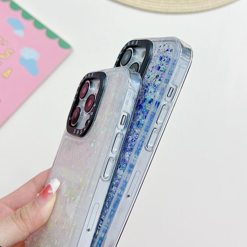 Θήκη κινητού τηλεφώνου αντικραδασμική με εφέ νυχτερινής λάμψης και διαφανές υγρό (Μπλε) για iPhone 14