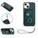 For iPhone 14 Organ Card Bag Ring Holder PU Phone Case with Lanyard(Green)