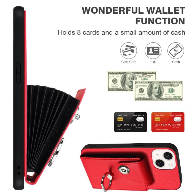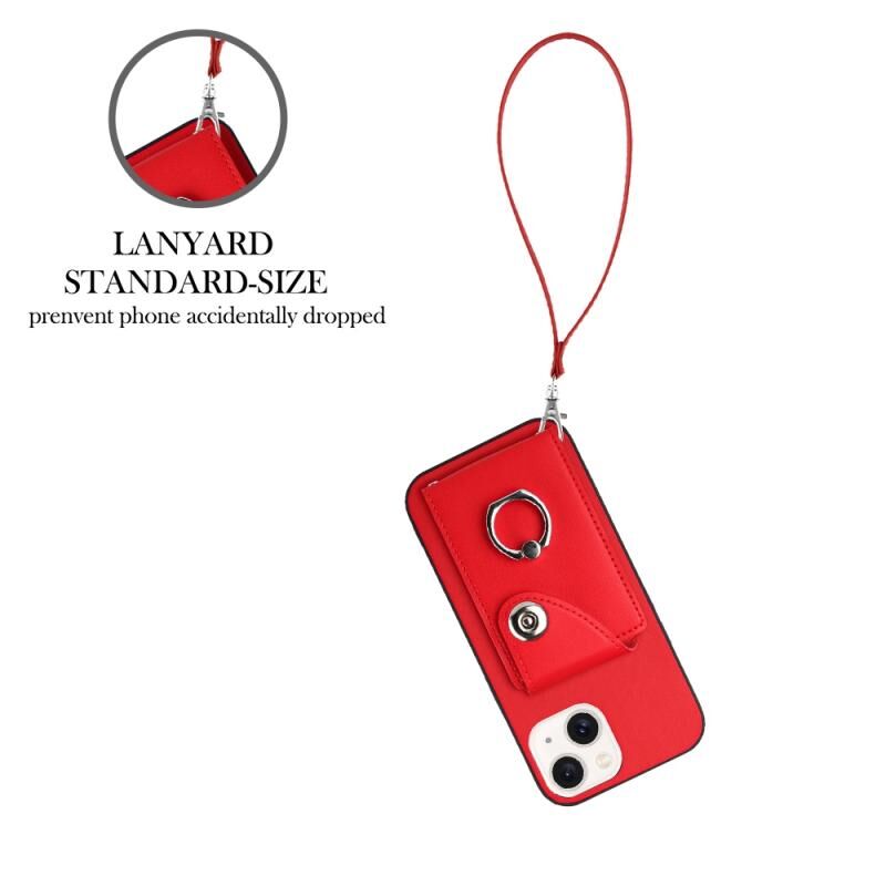 Θήκη κινητού τηλεφώνου για iPhone 14 με κάρτα οργάνωσης, δακτύλιο και λουρί από PU (Μπλε)