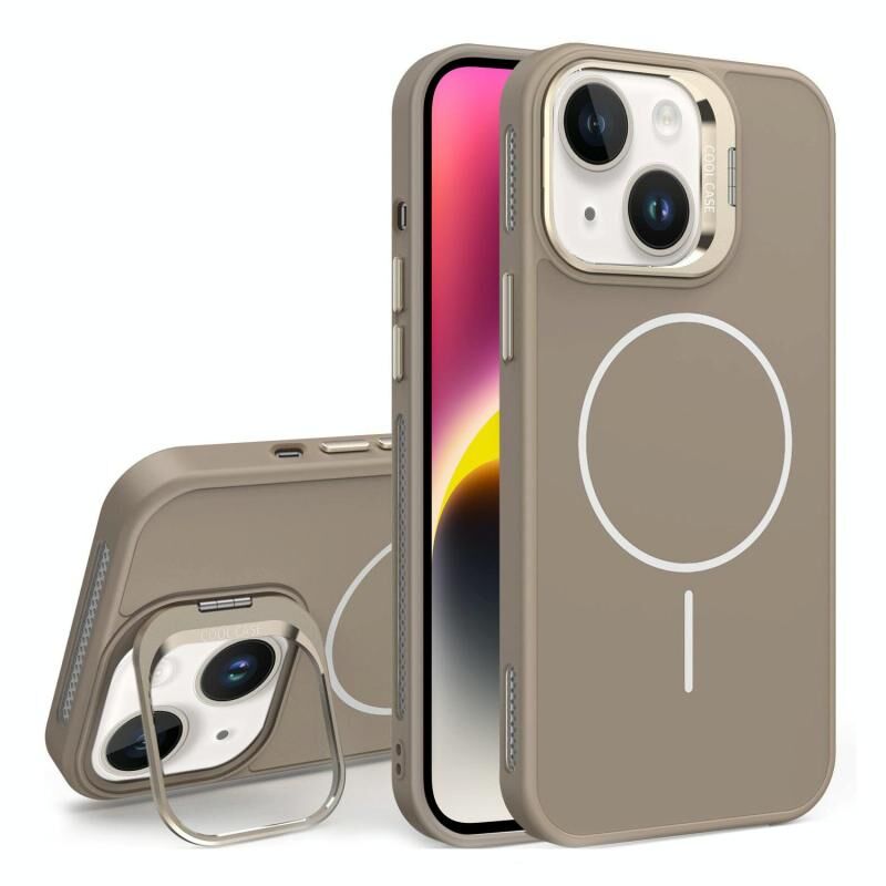 Θήκη iPhone 14 με Οργανική Σιλικόνη & Μαγνητική Στήριξη Φακού MagSafe (Χρυσό Ερήμου)
