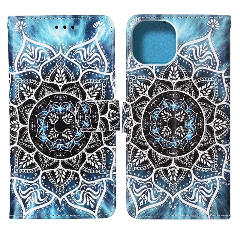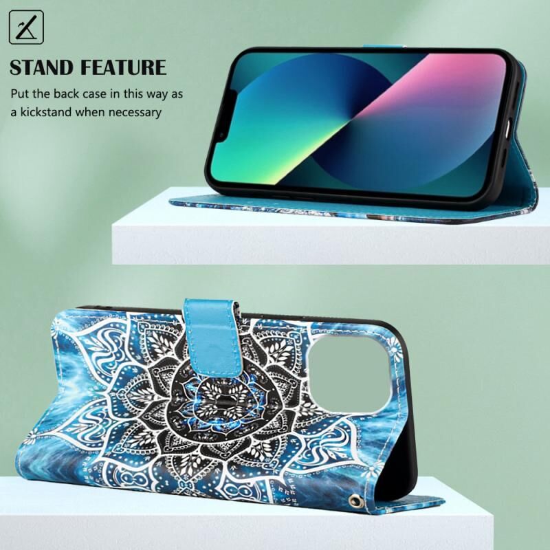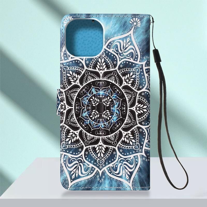 Θήκη για iPhone 14 από Δέρμα με Επίπεδη Υφή και Σχέδιο (Υποθαλάσσιος Μανταλά), με Λουρί, Θήκη Κάρτας και Πορτοφόλι.