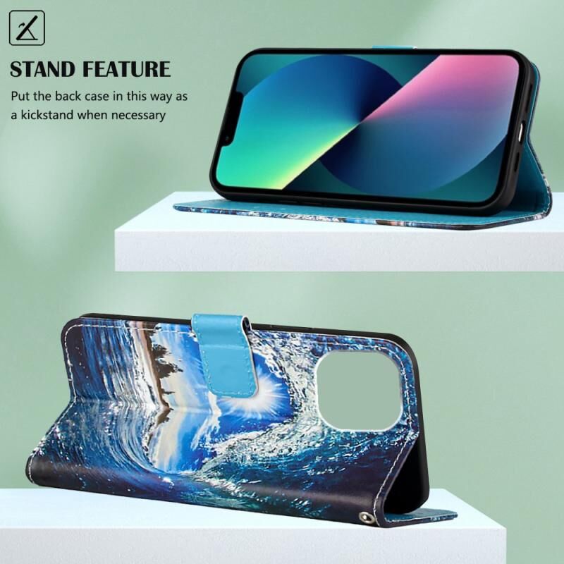 Θήκη για iPhone 14 από Δέρμα με Επίπεδη Υφή και Σχέδιο (Κύματα Ήλιου) με Λουρί, Θήκη Κάρτας και Πορτοφόλι.