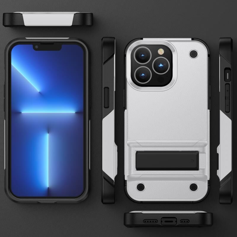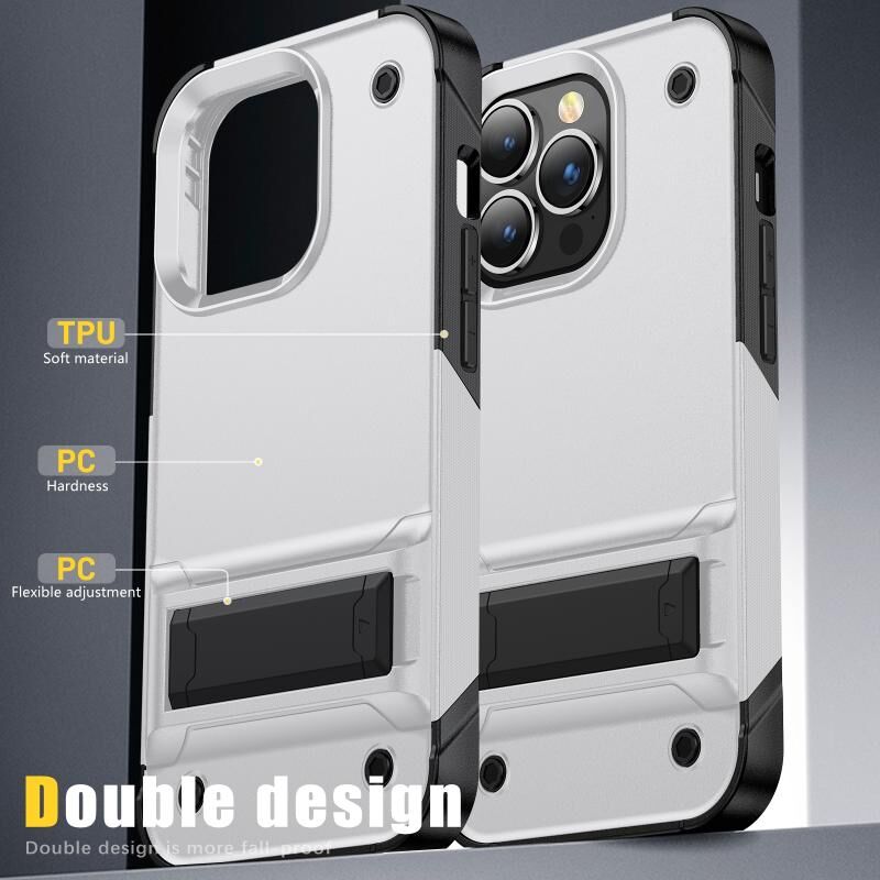 Θήκη κινητού τηλεφώνου για iPhone 14 PC + TPU ανθεκτική στις κρούσεις με βάση στήριξης (Λευκό+Μαύρο)