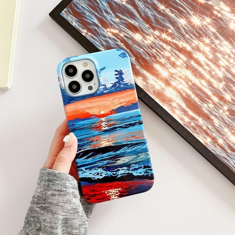 Θήκη κινητού 2 σε 1 για iPhone 14 Plus με αποσπώμενο σχέδιο λαδελαιογραφίας με θέμα τη θάλασσα (Μπλε)