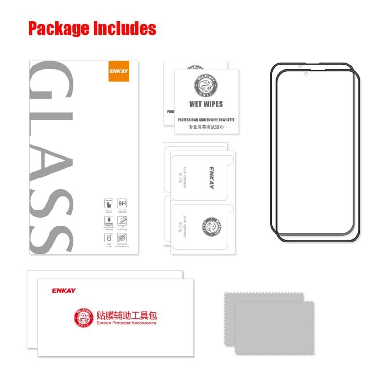 Για iPhone 14 Plus 2τεμ. Επικάλυψη οθόνης ENKAY από σκληρυμένο γυαλί με πλήρη κόλλα, αντικραδασμική, πλήρης προστασία (ENKAY)