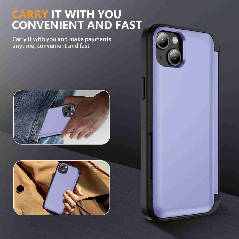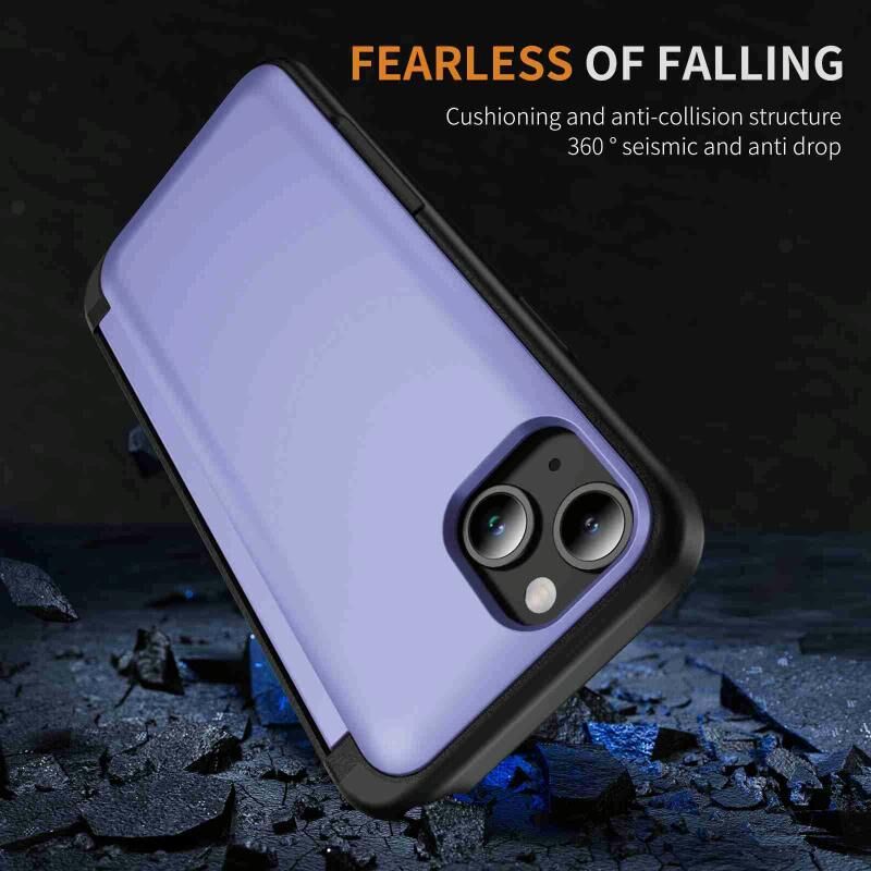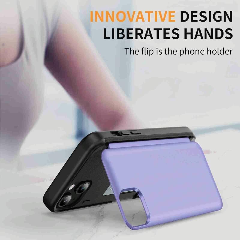 Για iPhone 14 Plus 3 σε 1 θήκη τηλεφώνου Flip Holder (ανοιχτό μοβ)