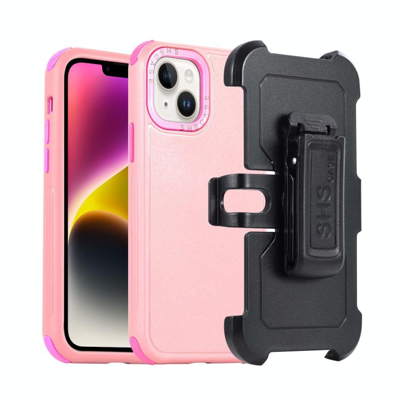 Θήκη iPhone 14 Plus 3 σε 1 με Συρόμενο Μανίκι PC + TPU (Ροζ+Ροζ Κόκκινο)